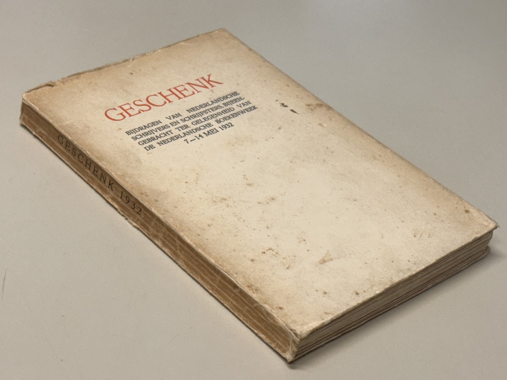 - 1933: C.J. Kelk,Geschenk 1933. Herinneringen aan Nederlandsche Schrijvers, bijeengebracht ter gelegenheid van de Nederlandsche Boekenweek 29 april-6 mei 1933.